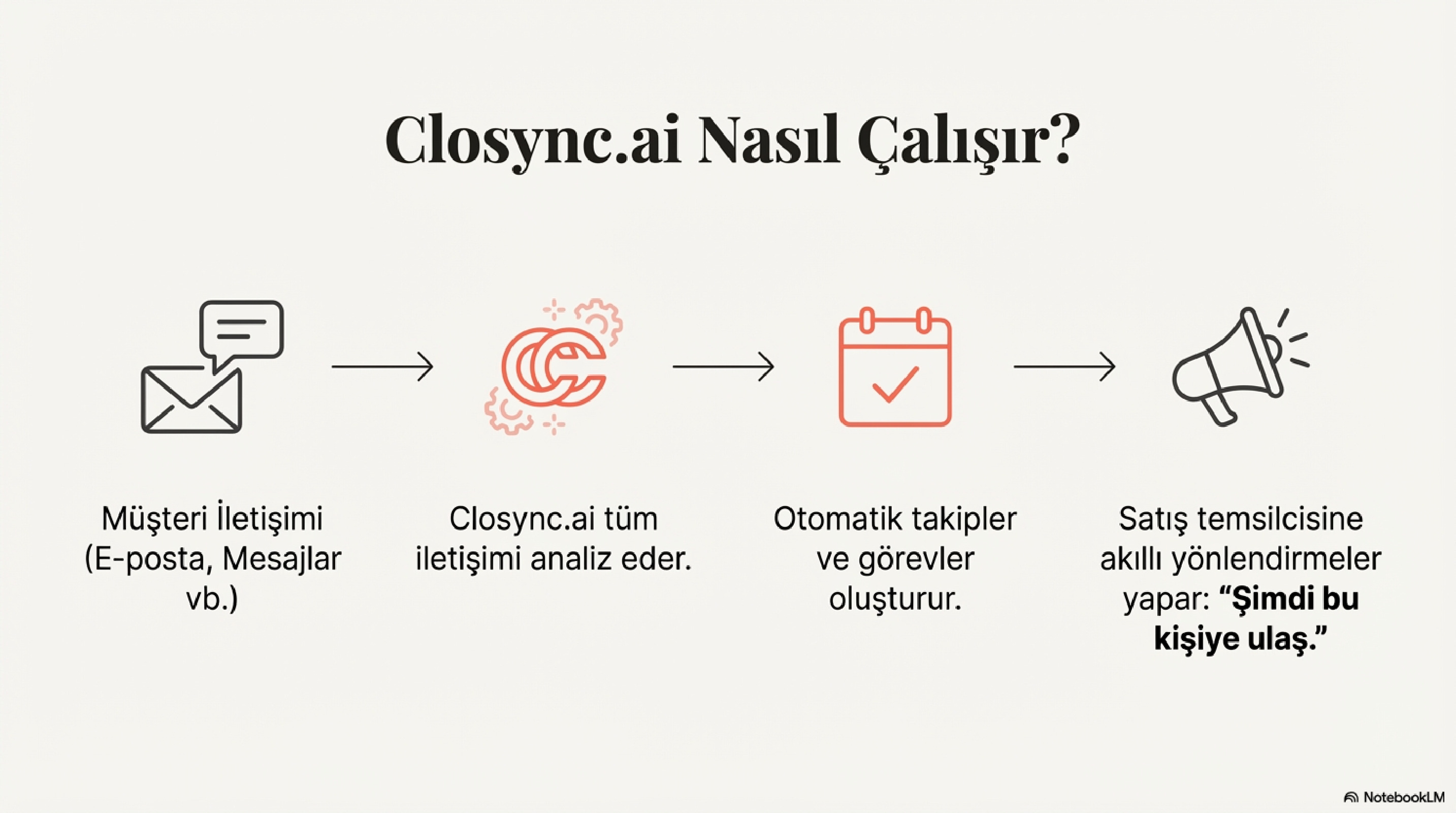 Closync.ai, klasik CRM’lerin yaşattığı veri yükünü ortadan kaldırmak için tasarlandı. Tüm müşteri iletişimini analiz eder, otomatik takipler oluşturur ve satış temsilcisine “Şimdi bu kişiye ulaş” gibi akıllı yönlendirmeler yapar. Sonuç olarak CRM, bir denetim aracı değil, satış zekâsının kalbidir. Ancak bu gücü açığa çıkarmak için veriyi değil, ilişkiyi yönetmek gerekir. Closync.ai ile CRM süreçlerinizi otomatikleştirin ve satış ekibinizin performansını artırın.