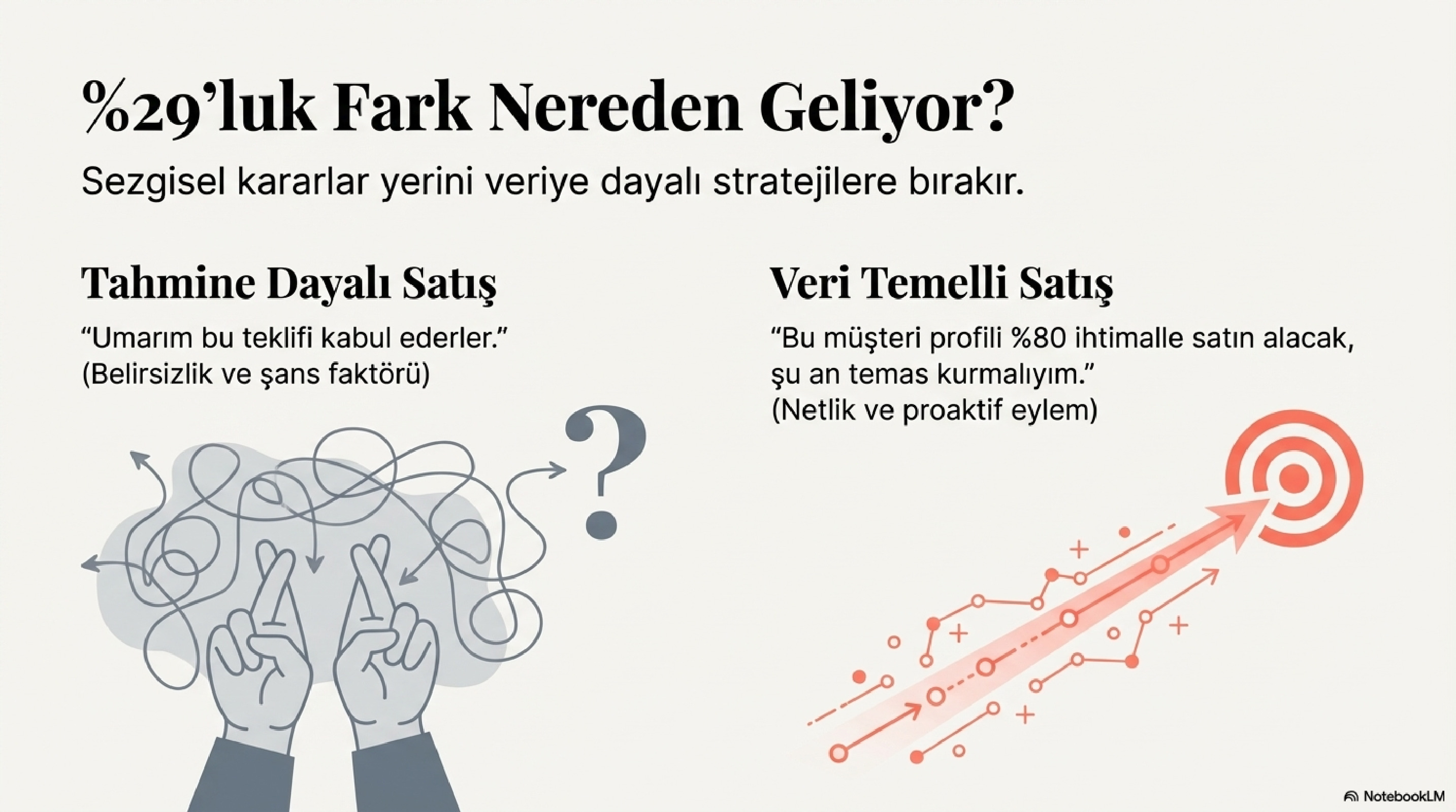 CRM doğru kullanıldığında, satış ekibinin reflekslerini güçlendirir. Sezgisel kararlar yerini veriye dayalı stratejilere bırakır. Araştırmalar gösteriyor ki, CRM’i aktif kullanan ekipler, kullanmayanlara göre ortalama %29 daha yüksek satış oranına ulaşıyor. Bu farkın nedeni basittir: CRM sistemi, “tahmine dayalı satış” (Umarım alırlar) yerine “veri temelli satış” (Bu müşteri %80 ihtimalle alacak) yapılmasını sağlar.