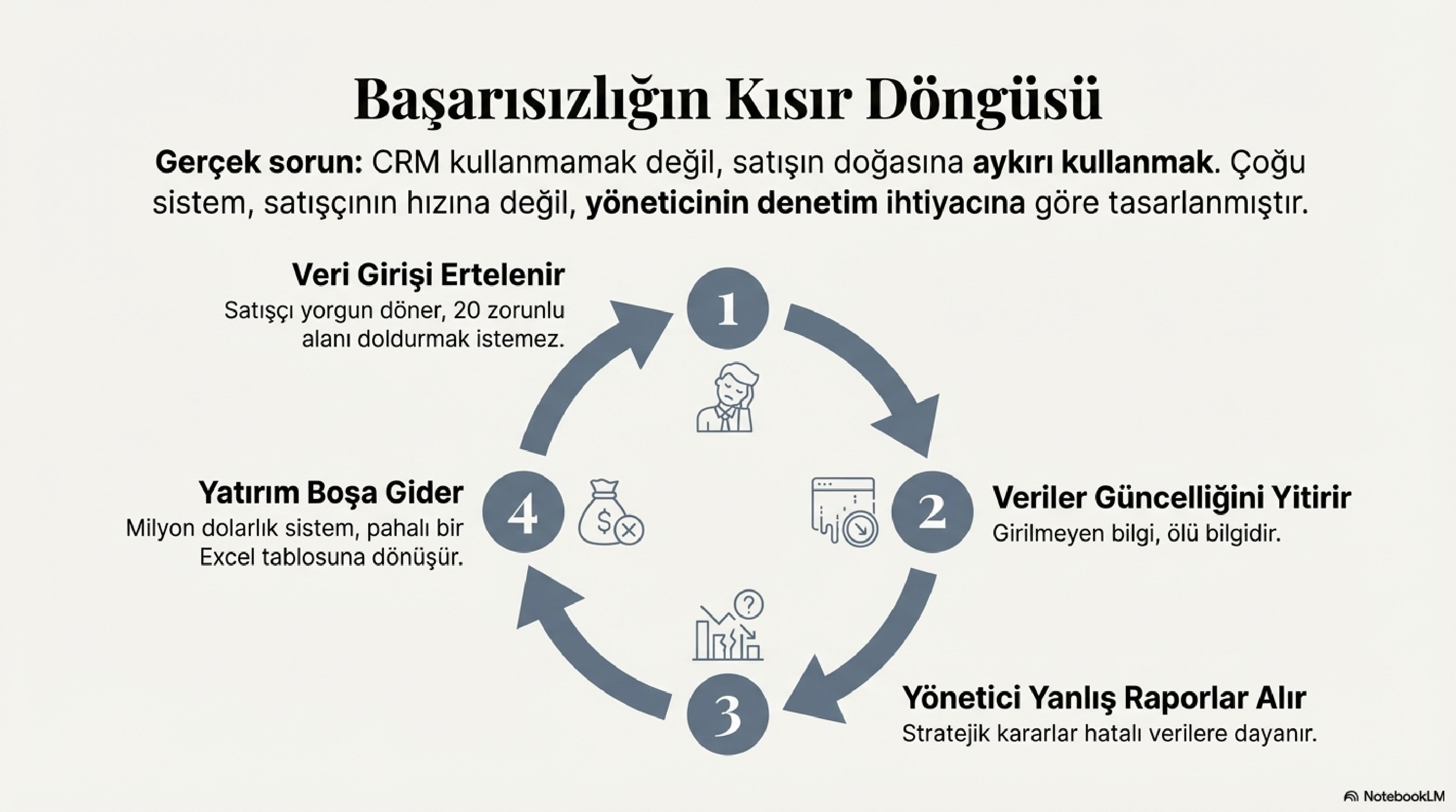 Peki, sorun teknolojide mi, yoksa bizim ona yüklediğimiz anlamda mı? CRM’in temel amacı, müşteriyle kurulan her teması kayıt altına alıp süreci verimli yönetmektir. Ancak çoğu zaman bu araçlar, yöneticilerin raporlama ihtiyacını karşılayan ama satışçının işini zorlaştıran birer denetim mekanizmasına dönüşür. Bu makalede, CRM kavramını yeniden tanımlayacak ve satış ekipleri için gerçek anlamını keşfedeceğiz.